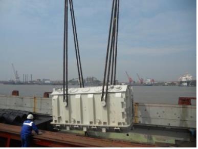 此项目亨通国际物流参与了上海港口代理段和海上运输段,货物单件重量为50-70吨不等。装运港是上海军工路港务公司,承运人是泰荣船公司。由于变压器对装载和舱底加固绑扎要求较高,在发运前,我司多次与泰荣船公司和军工路港务公司洽谈装运方案和落实细节,使得货物万无一失的成功发运。